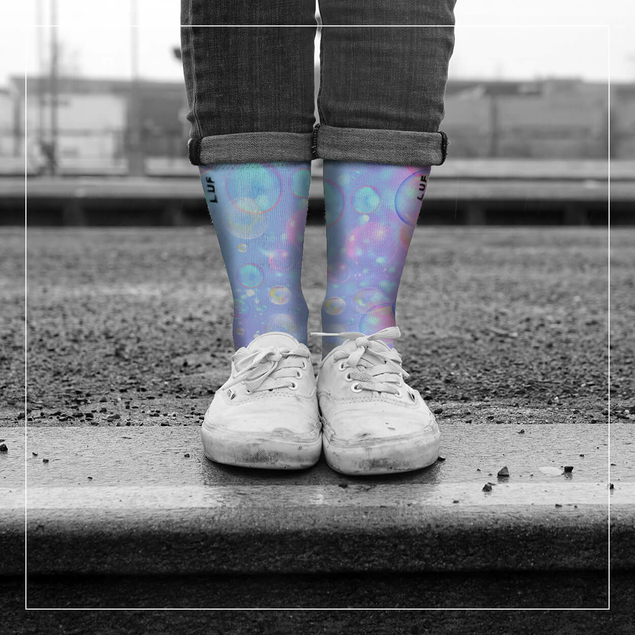 Im Gegensatz zu Seifenblasen zerplatzen die LUF|SOX Classics Bubbles nicht, sondern sind dir ein bunter Begleiter im Alltag.