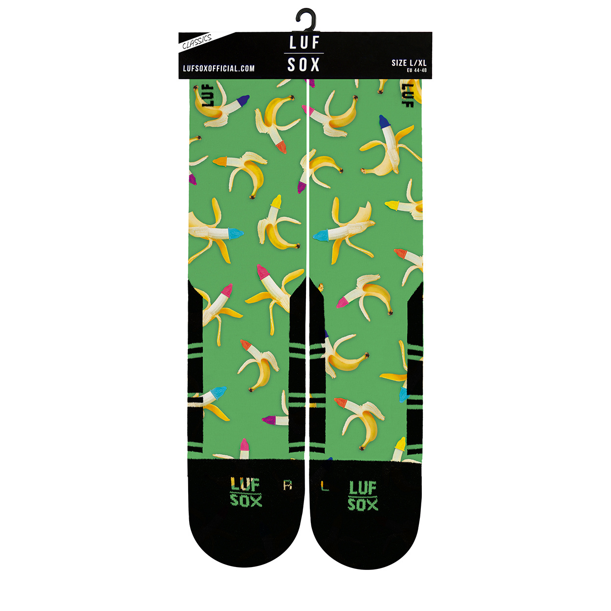 Safety first! Das Thema Verhütung sollte dir beim Bettsport nicht völlig Banane sein. Ist es dir im Eifer des Gefechts doch entfallen, erinnern dich die frechen LUF|SOX Classic Condana im letzten Moment noch daran. Auch wenn du die Socken dabei anbehältst.
