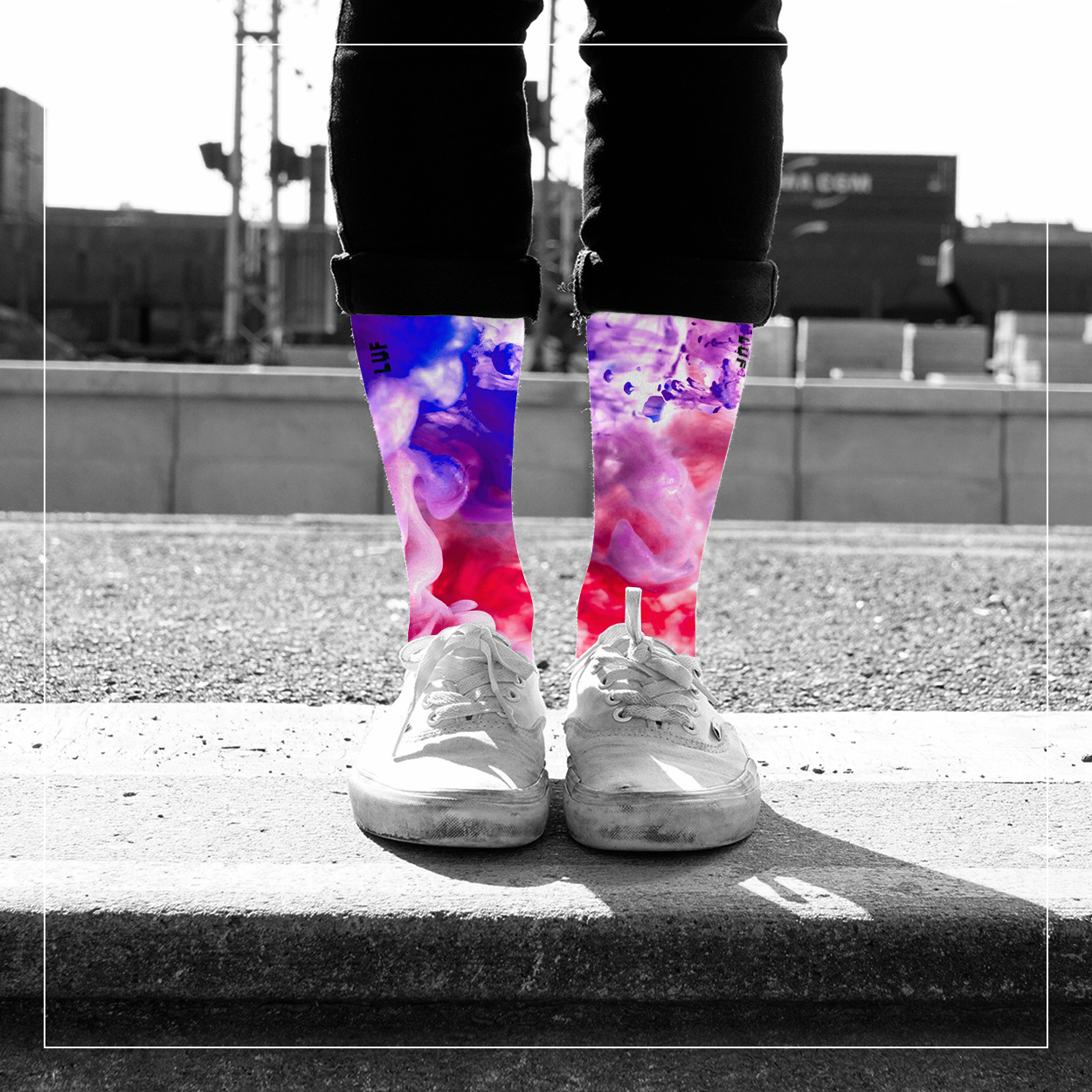 Kaum ein Sockenpaar ist so farbenfroh wie die LUF|SOX Power Eksplodo. Blau und Pink explodieren förmlich auf diesen Socken. Hoffentlich tust du das nicht beim Tragen, denn die LUF|SOX Eksplodo bieten höchsten Tragekomfort und Qualität.